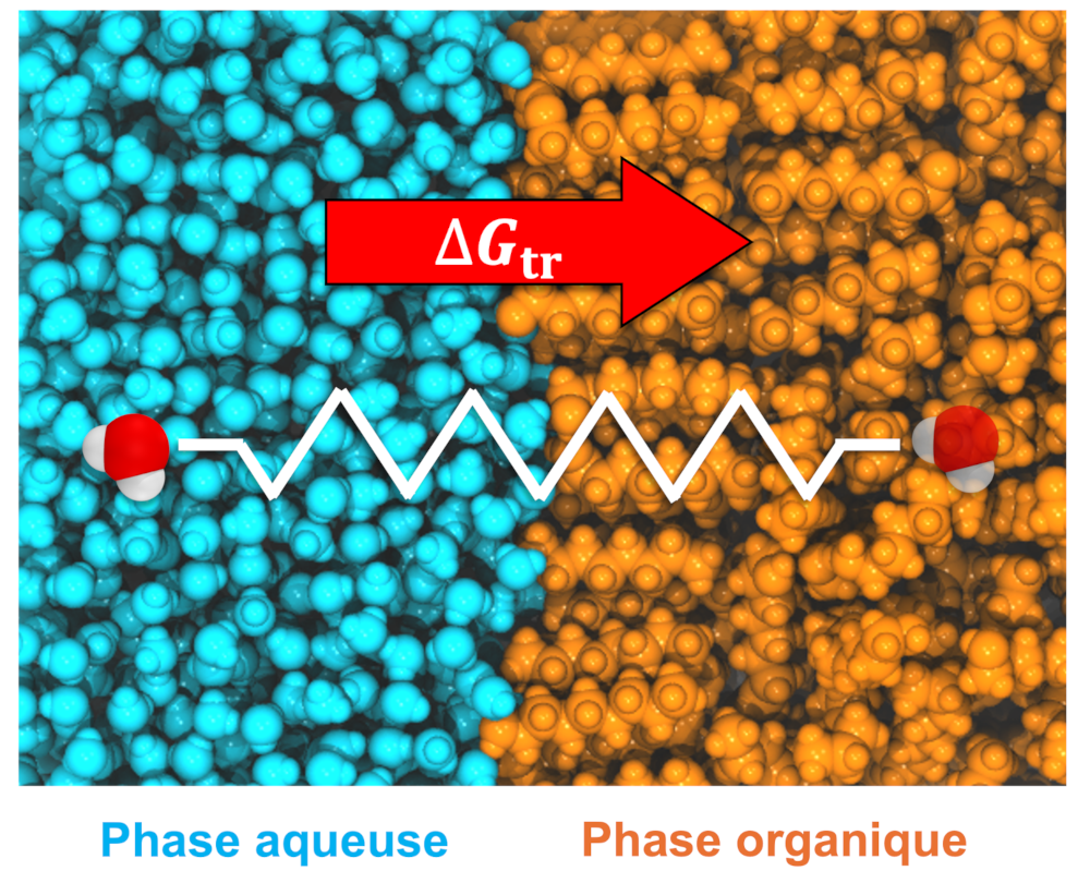 Keywords: Molecular Dynamics; Steered Molecular Dynamics; Liquid-liquid extraction; Interfaces; Structural properties; Gibbs energies of transfer
