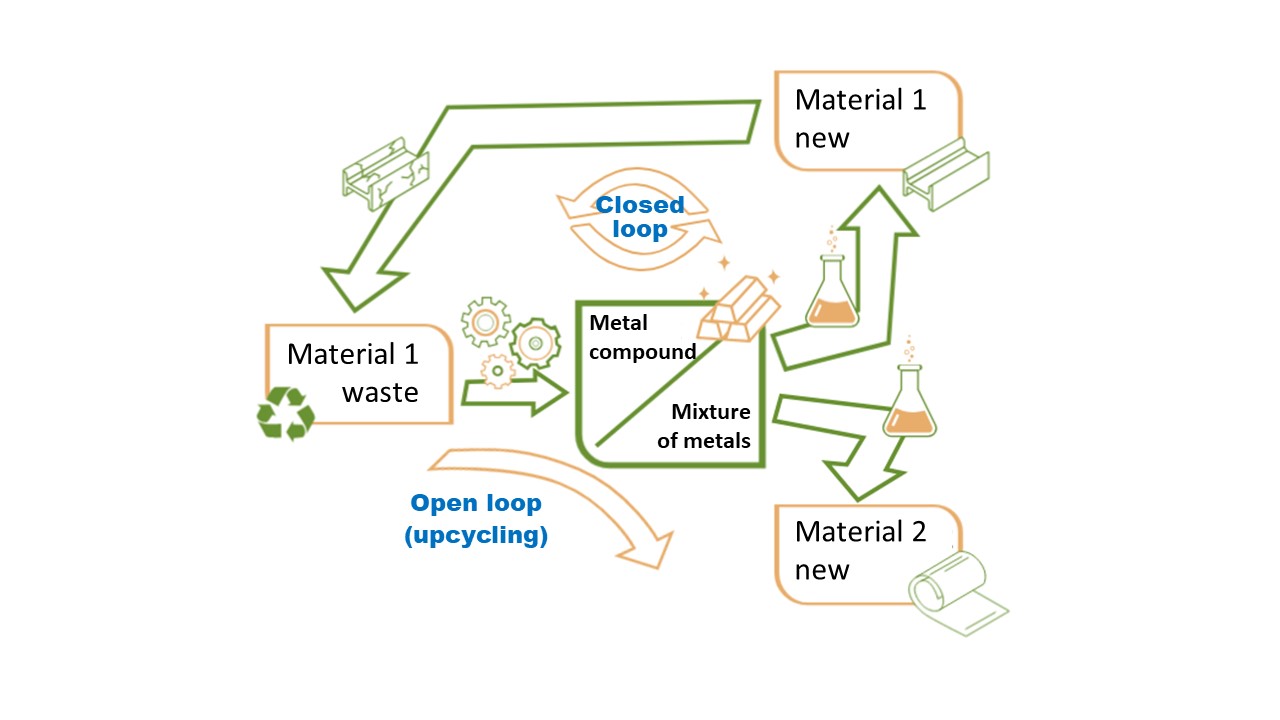 Understanding the behavior of metals in complex systems (in liquid and/or solid phase) is at the heart of the development of efficient hydrometallurgical processes for recycling and waste management. Usually, the approaches developed are mostly aimed at the control of unitary steps, by liquid or solid route. The team proposes to integrate all these developments into global extraction-separation-final material sequences, under the concept of circular separative chemistry. This simplification of the processes aims at a better management of the mixtures, a better flexibility regarding raw material of variable composition, a reduction of the number of stages, generally synonymous with a control of the generated effluents. Moreover, the notion of recycling is not restricted to the isolation of a purified metal or element, and the team takes into account the final materials: the processes developed integrate as well as possible the valorization of the targeted metal(s) in the form of finished product, for a similar or different application, with a peculiar interest for its shaping.
