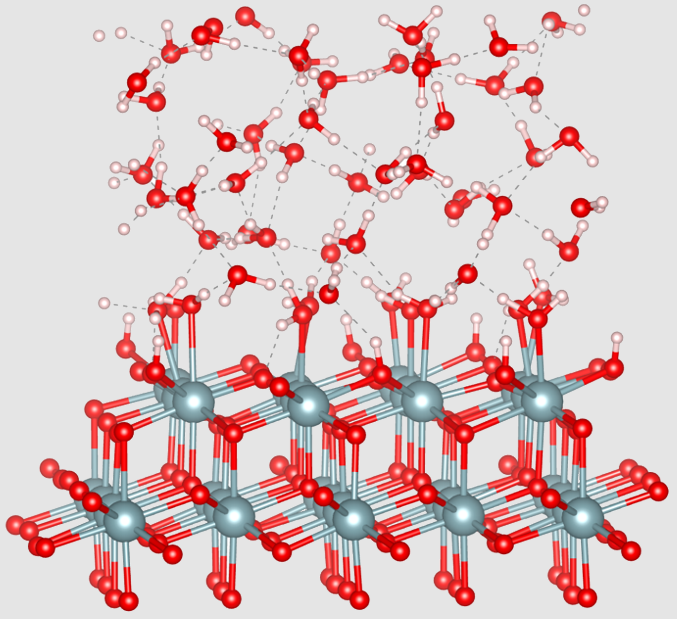Ces travaux mettent en évidence des comportements d’adsorption très contrastés selon la surface : la face (100), particulièrement réactive, conduit à une hydroxylation complète et rapide, synonyme de passivation. À l’inverse, les surfaces (111) et (110) favorisent une adsorption principalement moléculaire, donnant lieu à la formation de couches structurées d’eau. Les simulations révèlent également une organisation électrostatique nette, traduite par l’émergence de charges de surface différenciées.